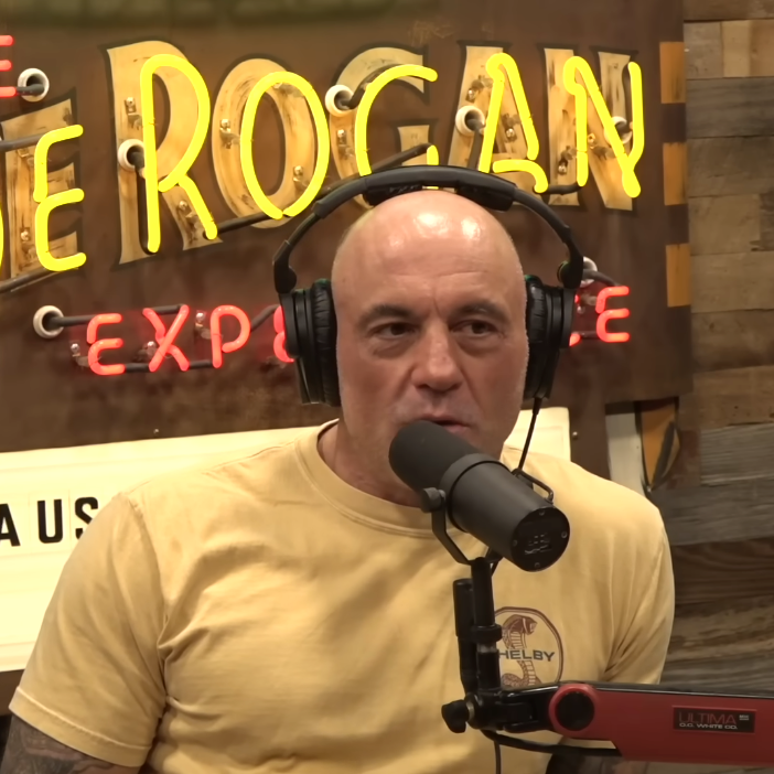 During JRE #2435 with Bradley Cooper, Joe Rogan is wearing a yellow Shelby Cobra Snake Logo Tee.